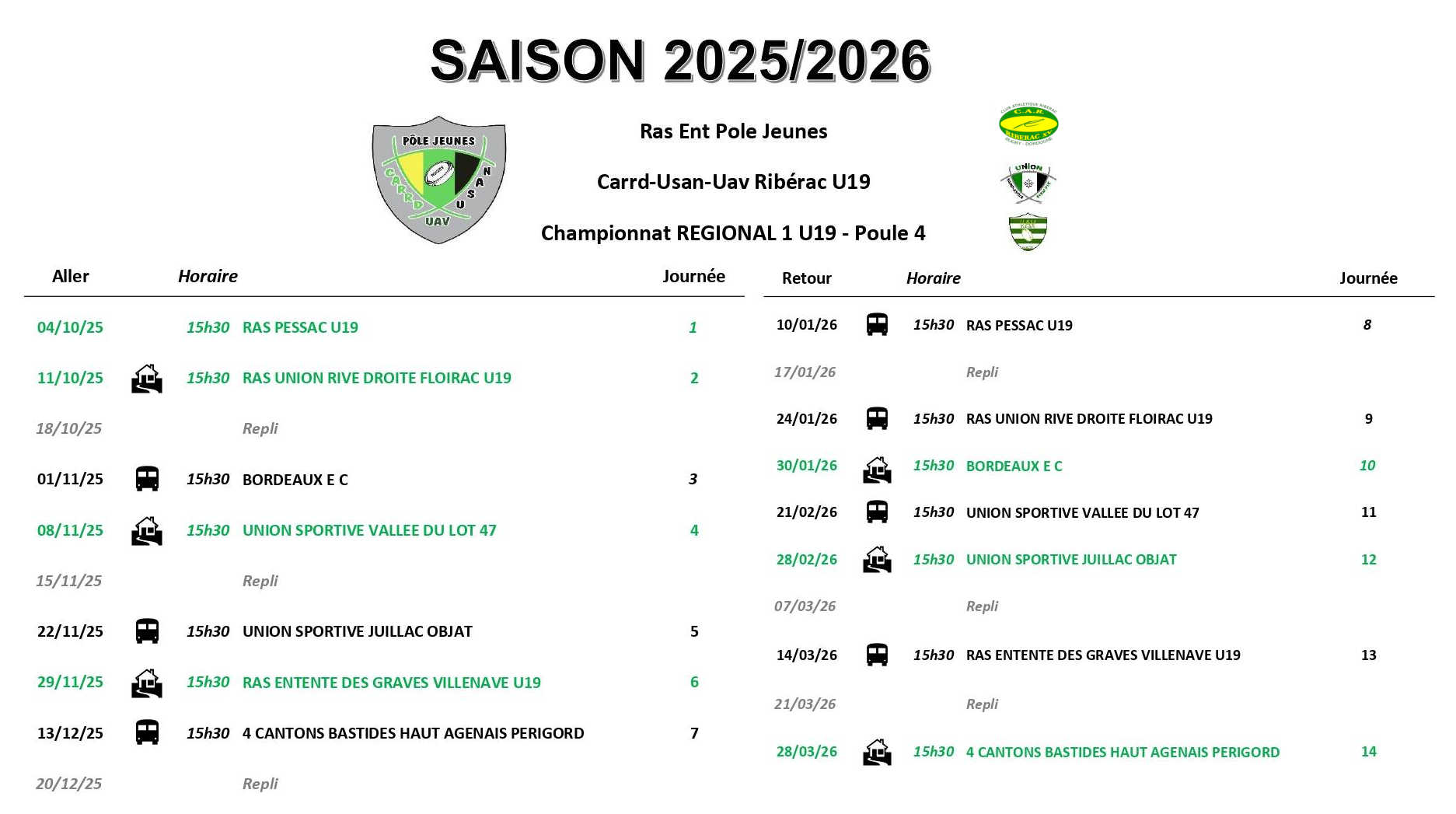 Déplacement à Chameyrat: Victoire de l’équipe B: 33 – 7; Match nul de la A: 10 – 10